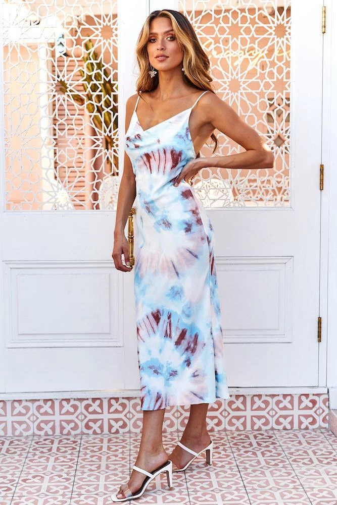 Infuse Fashion Weekβs iconic slip trend into your transitional wardrobe with our A Split Decision Midi Dress. This effortless essential gives off serious 90s vibes with its vibrant tie-dye print and elegant cowl neckline. Wear casually with slides or glam up your look with matching stilettos.