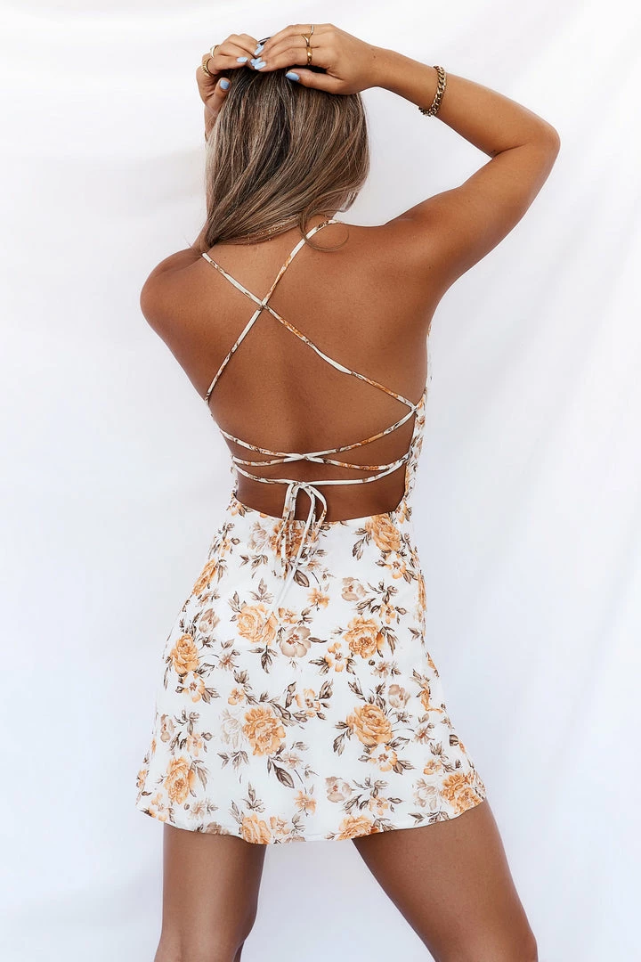 Feel all eyes on you with the cutest number! The Ella Dress is the perfect mini from going to daytime to nighttime drinks. The beautiful summery print along with the beautiful tie-up back are major keepers. Style yours with some nude heels and sparkling jewellery.