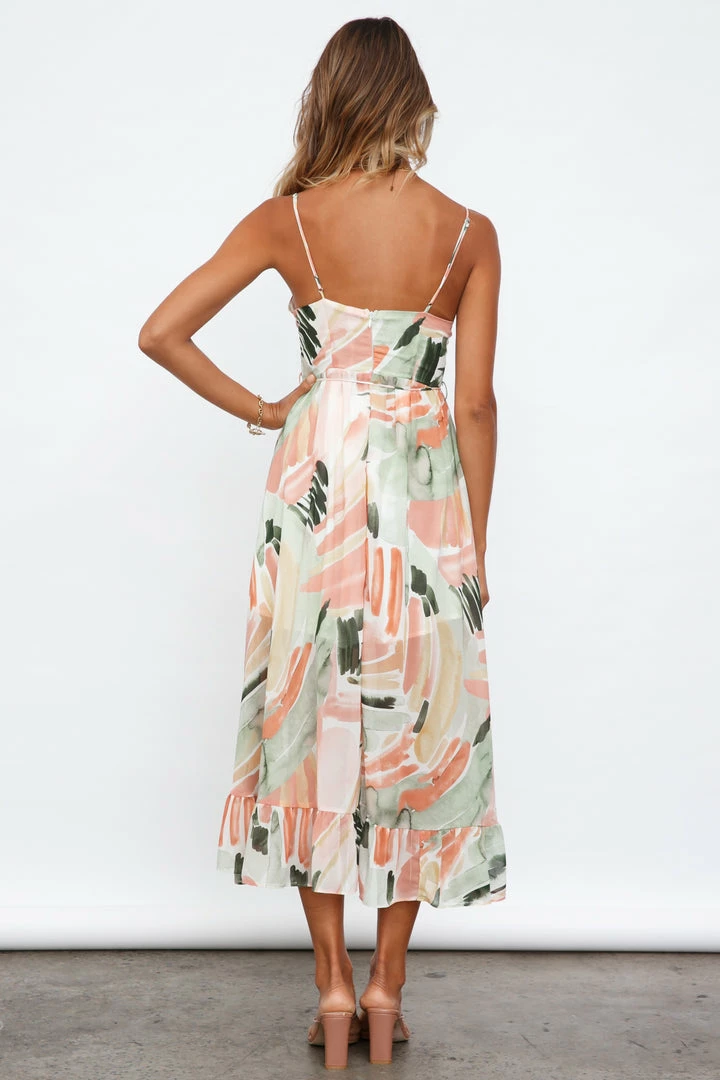 - Pink and green print maxi dress.