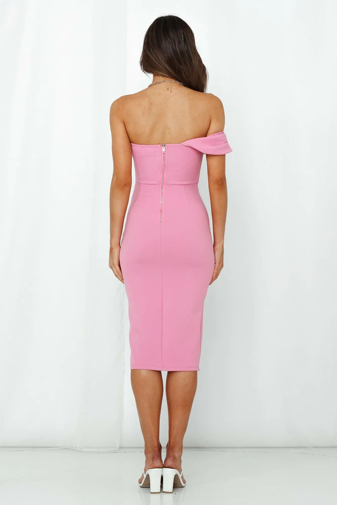 - Hot pink midi dress.