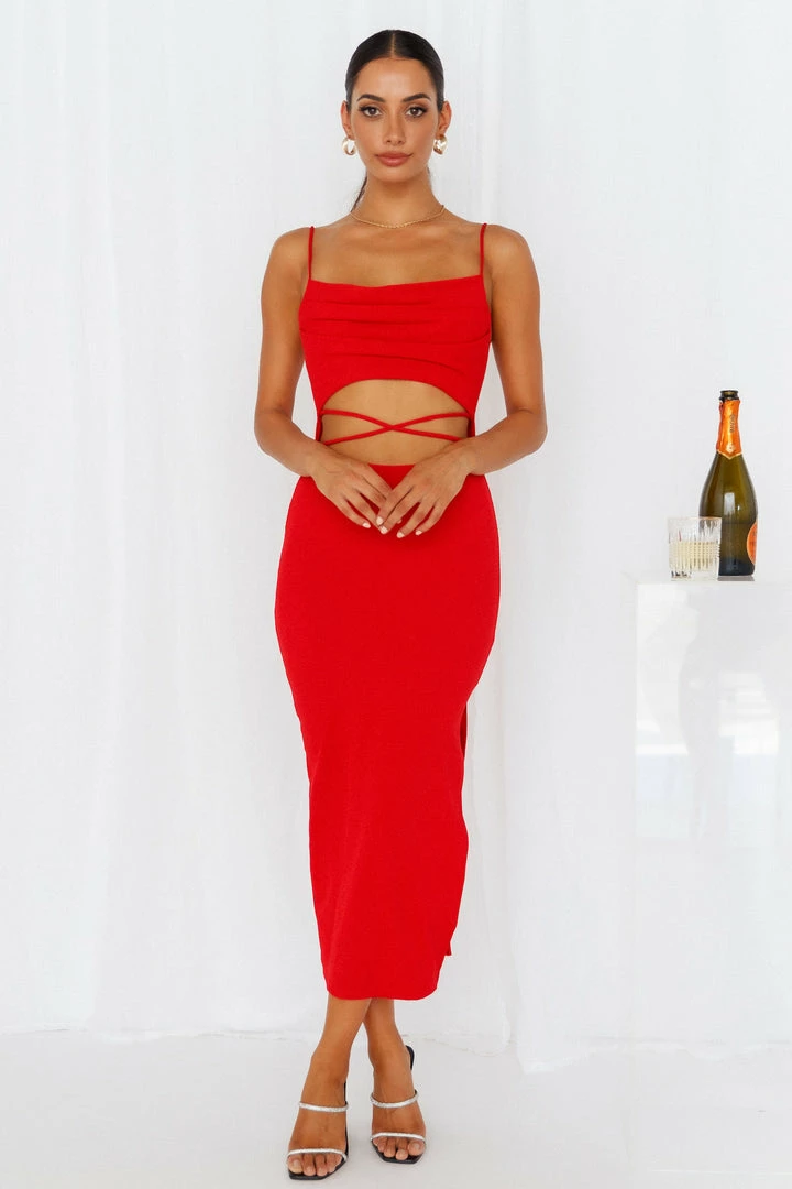 Girl, you will be effortlessly glowing at your next event in our Midnight Coffee Maxi Dress! This wardrobe staple features ribbed detailing, a gathered neckline, a waist cutout accentuated with straps, and a split to the side to have you feeling sexy. Be sure to look sleek and style yours with a high pony, gold jewellery and block heels!