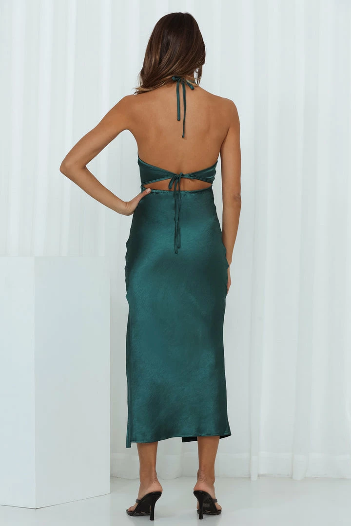 Luxe and classy is everything this mid exudes. The Country Club Meet Midi has a scoop neck and an open back with an adjustable lace-up back. Style yours with black heels and a shoulder bag.ย
