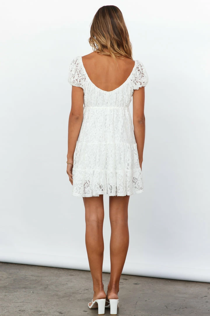 - White lace mini dress.