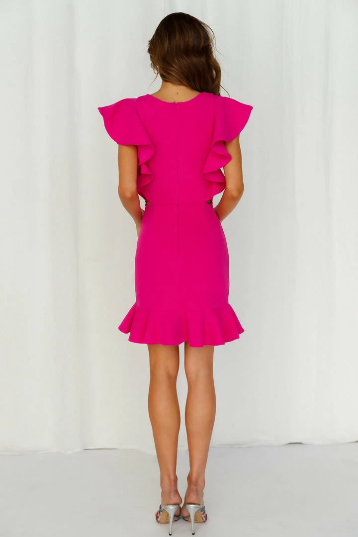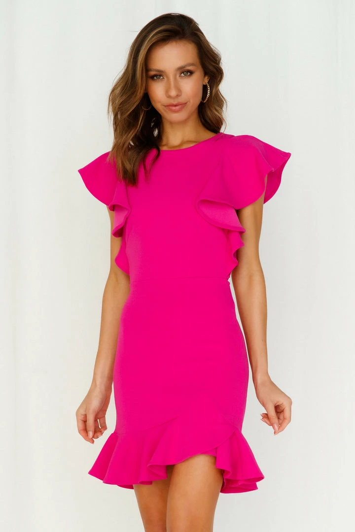 Show who’s boss in the Girl On Top Dress. This dress exudes those powerful B vibes, which we are ALWAYS wanting. The mini has a high neck, with soft ruffles on the sleeves and hem, along with the cute side lace-up details. So wear this at work or at your next brunch and be strong, as well as fem. Pair yours with an updo and strappy heels.ย