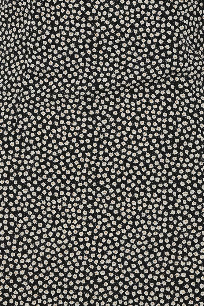 - Navy and white print dress.