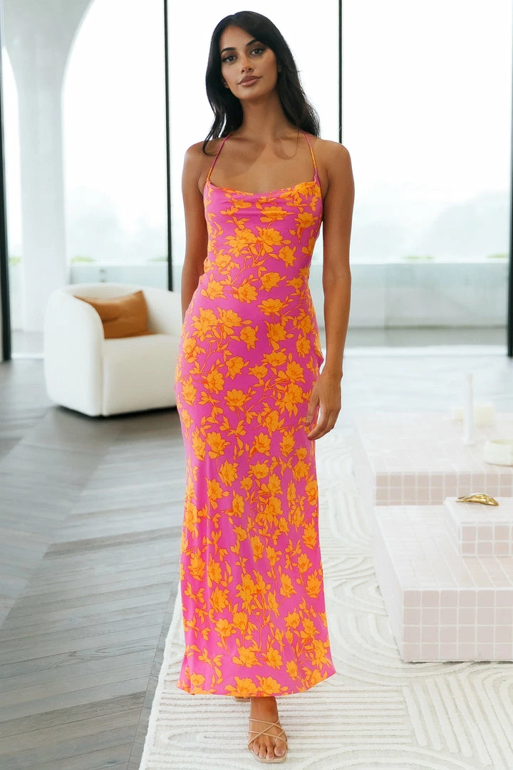 Hey Girl! It’s time for you to become the queen of brunch with this lewk. Adorn this midi which features a cowl neckline and a lace-up back. Flowy and cute! Style yours with mules and waves.