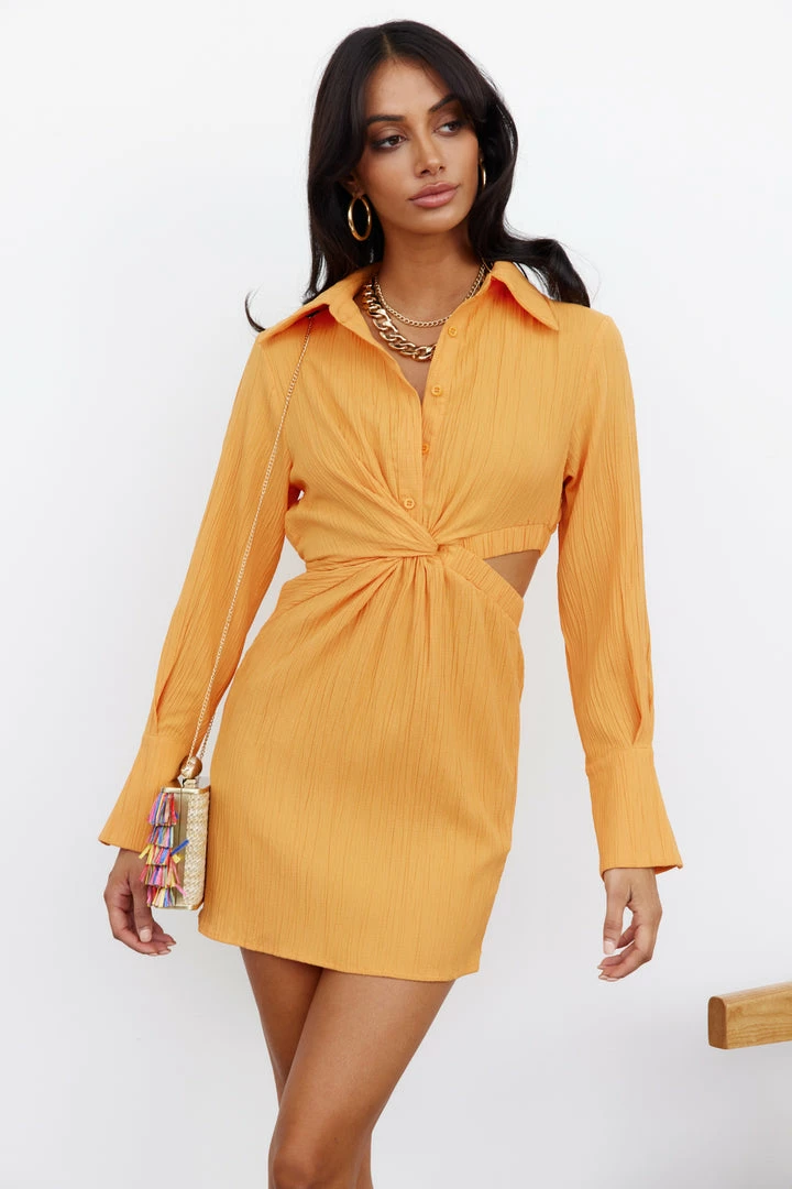 Be as sweet as Honey Dripping with this cute AF mini. Featuring long sleeves, collars, waist cut-out and a button detail at the front. Style yours with mules and waves.