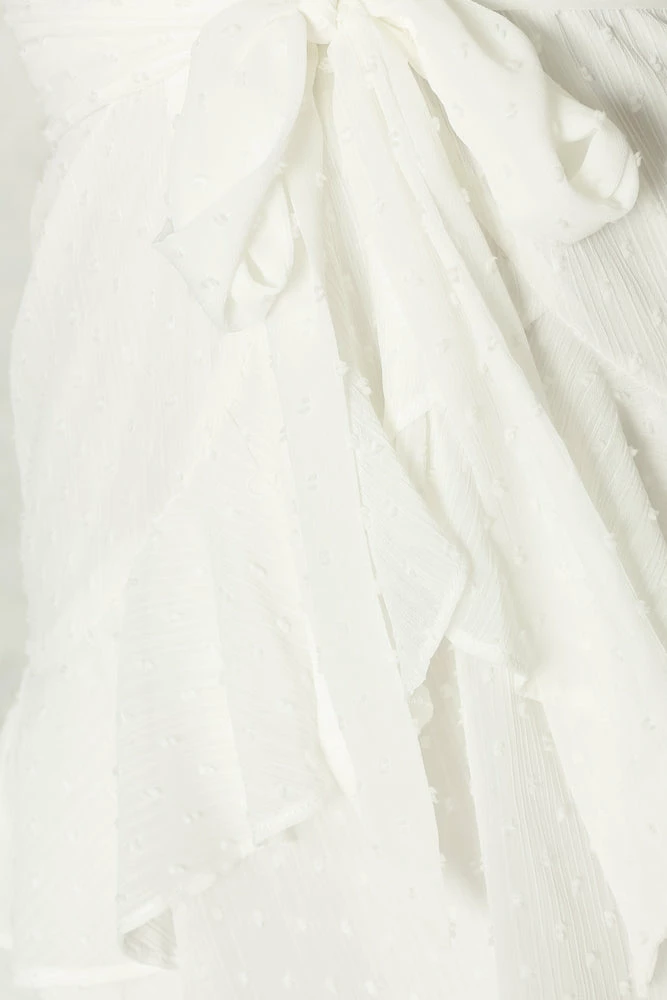 Our Ice Cold Dress has a crossover V neckline, adjustable shoulder straps and it has an invisible back zip that’s secured by a metal clasp. It also has a waterfall ruffle detail on the skirt. Wear yours with rose gold highlighter!