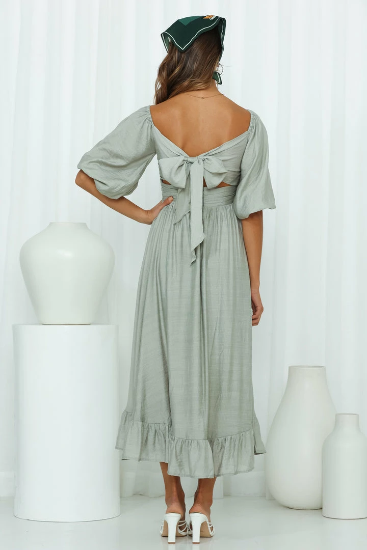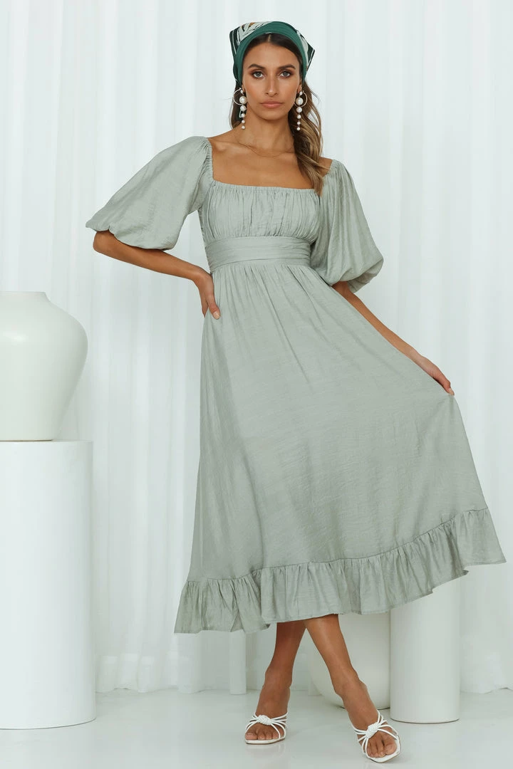 - Sage midi dress.