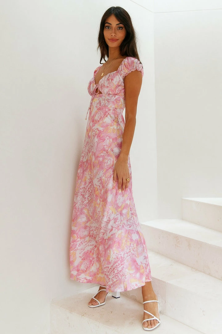 We know you’re a Queen on the inside, so show your royalty on the outside with this midi. Featuring a padded bust, a front cut-out with a tie, short sleeves and a flowy skirt. Style yours with sandals and waves.ย
