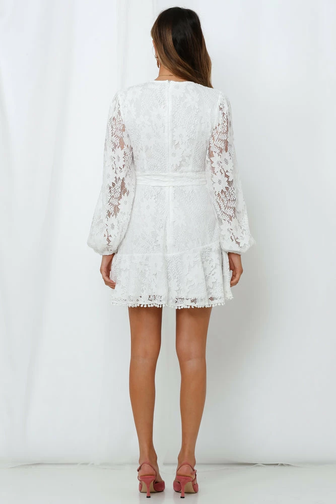 For the love of lace, don’t be basic! Get your new feminine fix with our fit-and-flare Elevated Angels Dress. The perfect transitional essential for autumn, the lacy number features balloon sleeves, a cinched wrap neckline and waist, adjustable waist ties and a ruffled wrap hemline.