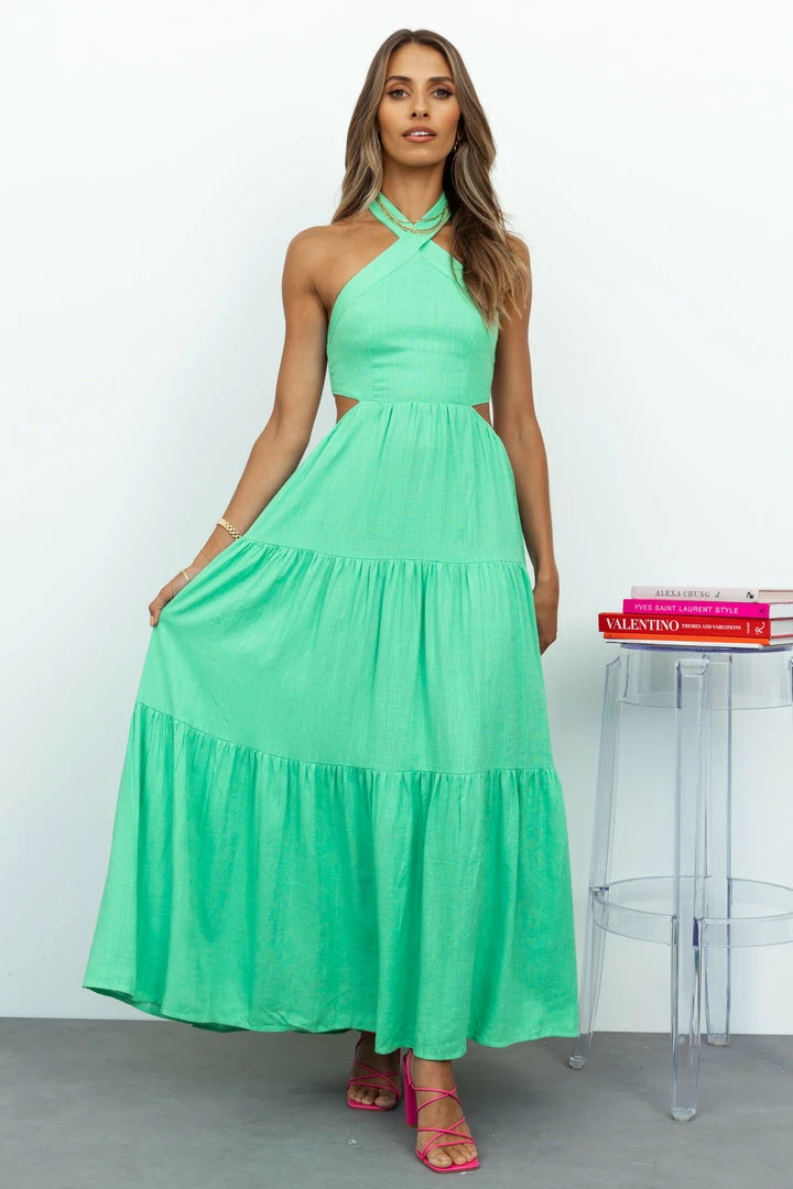 Embark on the most beautiful of adventures with your gals ,’cause we love a bit of self-love! Live your best life in the Landscape View Maxi which features a tie-up halterneck, an open back with straps and a flowy skirt. Style yours with mules and waves.