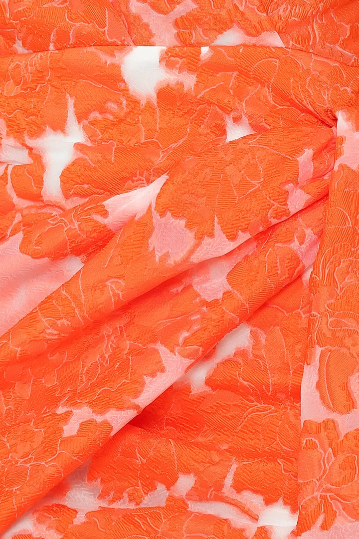 - Lightweight, non-stretchy embroidered brocade fabric.