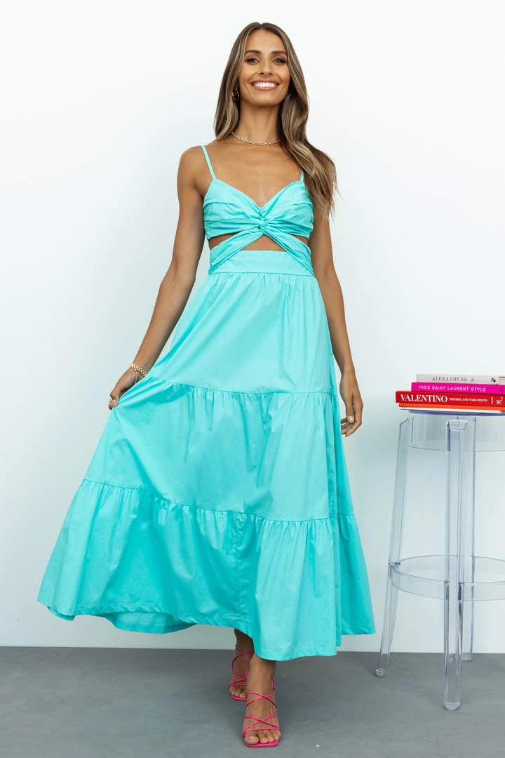 We Need To Know Now, are you ready to be the cutest gal at brunch? Then it’s time to add this maxi to your cart. Featuring a unique tie-up top with a tiered skirt. Style yours with sandals and waves.ย