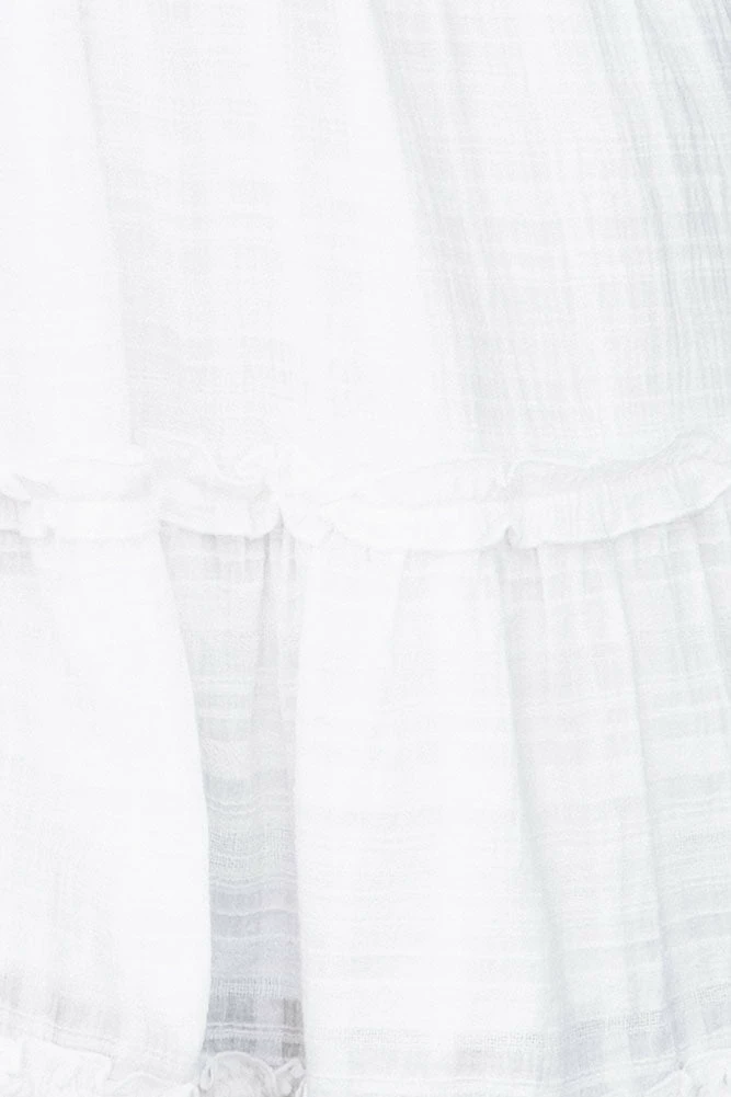 Flick between the beach and the bar this vacay season in the laxβ threads youβll love. Our New Romantics Dress features a ruched fit on the bust and a flowy bodice with subtle tiered frills throughout. It also has tie up shoulder straps with gold hardware. Style yours with salty waves, woven wedges and sun-kissed skin!