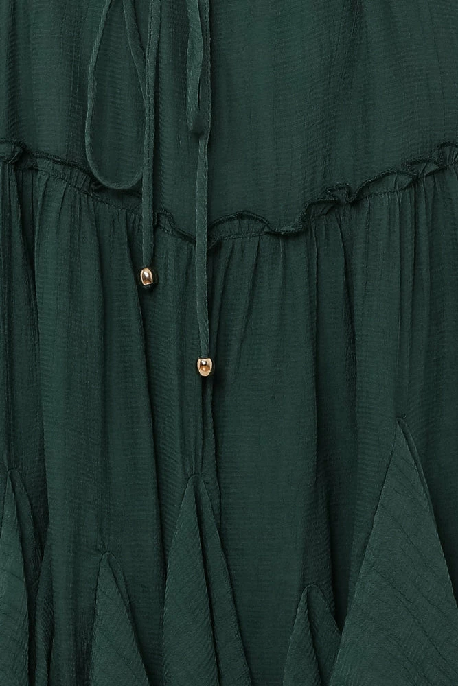 - Deep green dress.