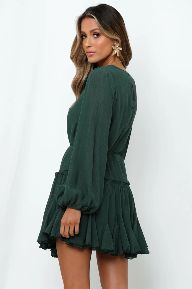 Thereβs no such thing as too many ruffles on your dress! Taking you from brunches to a casual weekend in, Our Once In A Blue Moon Dress features a breezy shift silhouette, long bouffant sleeves and a trending high-neckline – Style yours with tousled locks and statement block heels.