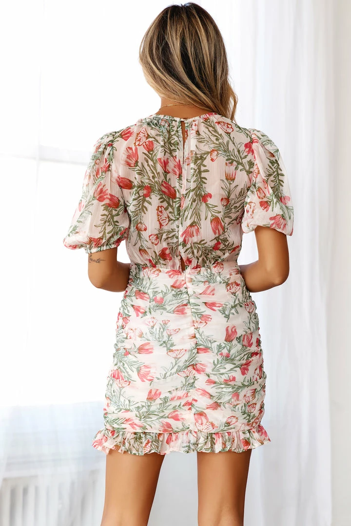 Enjoy the cutest Picnic Event in this must-have mini! Featuring a high neck, short puffy sleeves and aΒ ruched skirt. Simply adorable! Style yours with mules and gold jewellery.Β