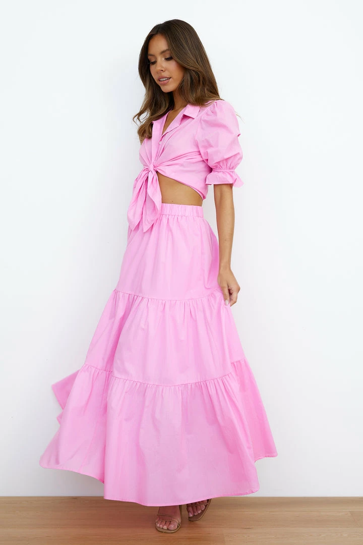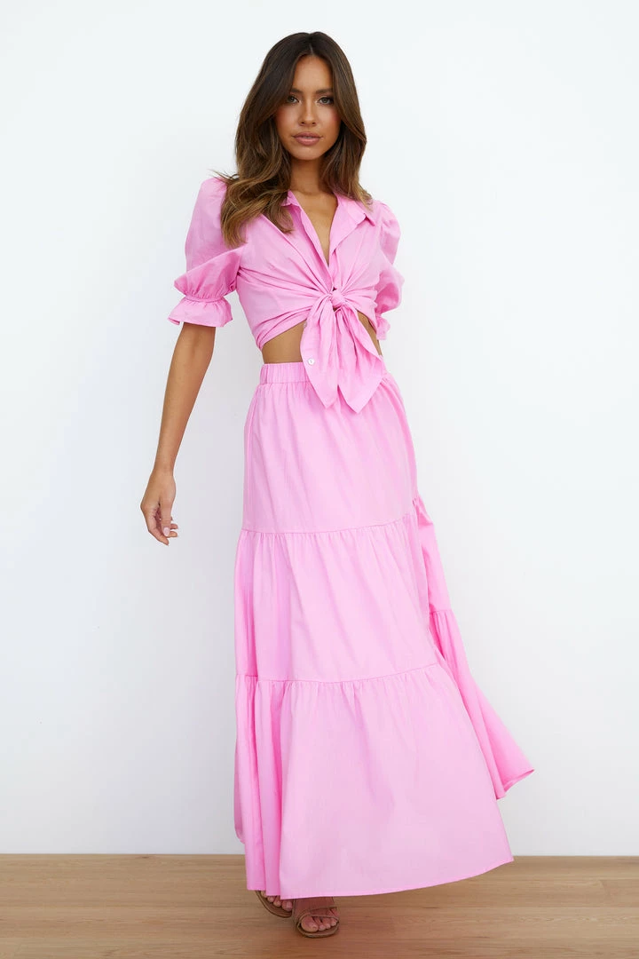 The Stylist Set is an essential for your new season wardrobe babe. Featuring a linen feel material, slightly puffy sleeves and an extra relaxed skirt. Wear with loose curls and sandals.