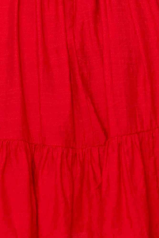 - Red mini dress.