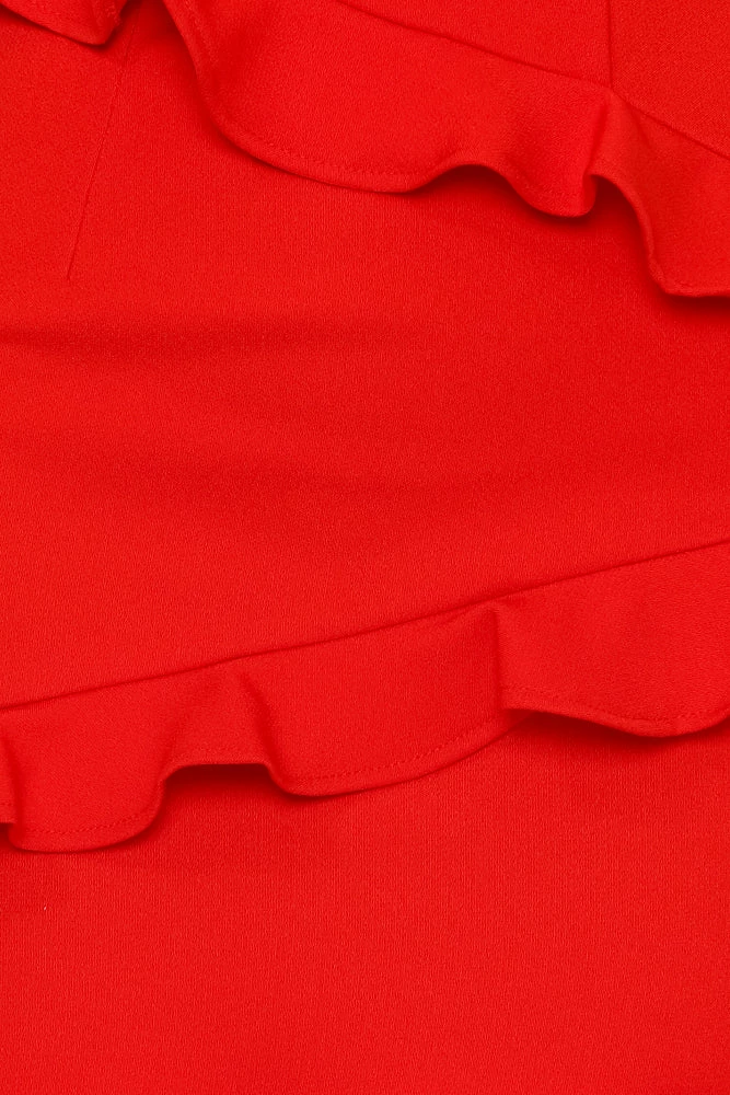 Leave a lasting impression and get all the love on the ‘gram in our Through The Dark Dress! This style has a rounded square neckline, adjustable shoulder straps and an invisible back zip that’s secured by a metal clasp. It also has a ruffle detail on the front and looks AMAZE when paired with a fiery lip and bombshell waves!