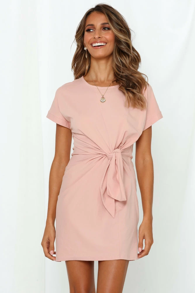 Tie-up tee dresses are in this season! Our To Get Over You Dress has a classic round neckline, short sleeves and it has a tie up detail on the front. Wear this minimal slip-on style with your favourite oversized tote and round sunnies for a day at the beach!