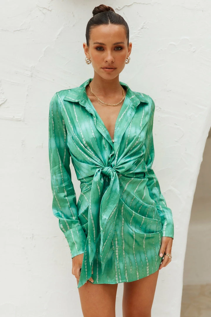 Make everyone trip over their words in the Ruby Nori Dress. Featuring long sleeves, a plunging neckline and waist-ties. Style yours with heels and waves.ย